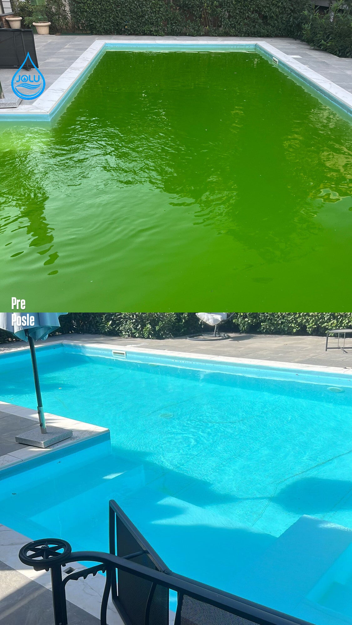 Posle: Potpuno očišćen bazen i balansirana voda spremna za kupanje.